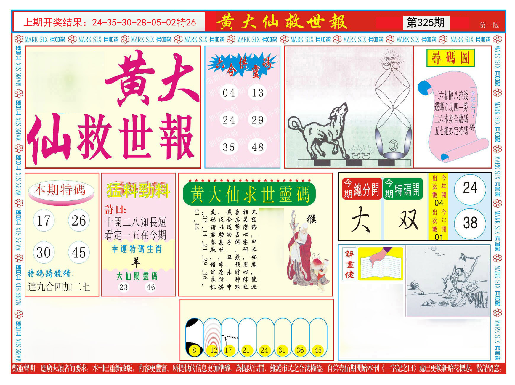 香港新新彩 325期【一马当先 犬马之恋 风花雪月】解:一句解诗准准准!,开【有平特肖 无】 |